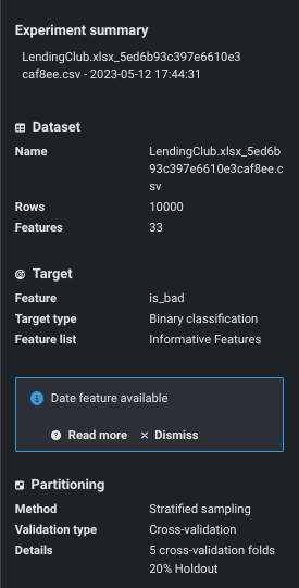 検定とホールドアウトの両方をカバーするのに十分な行がない場合、DataRobotは自動的にホールドアウトを無効化します。