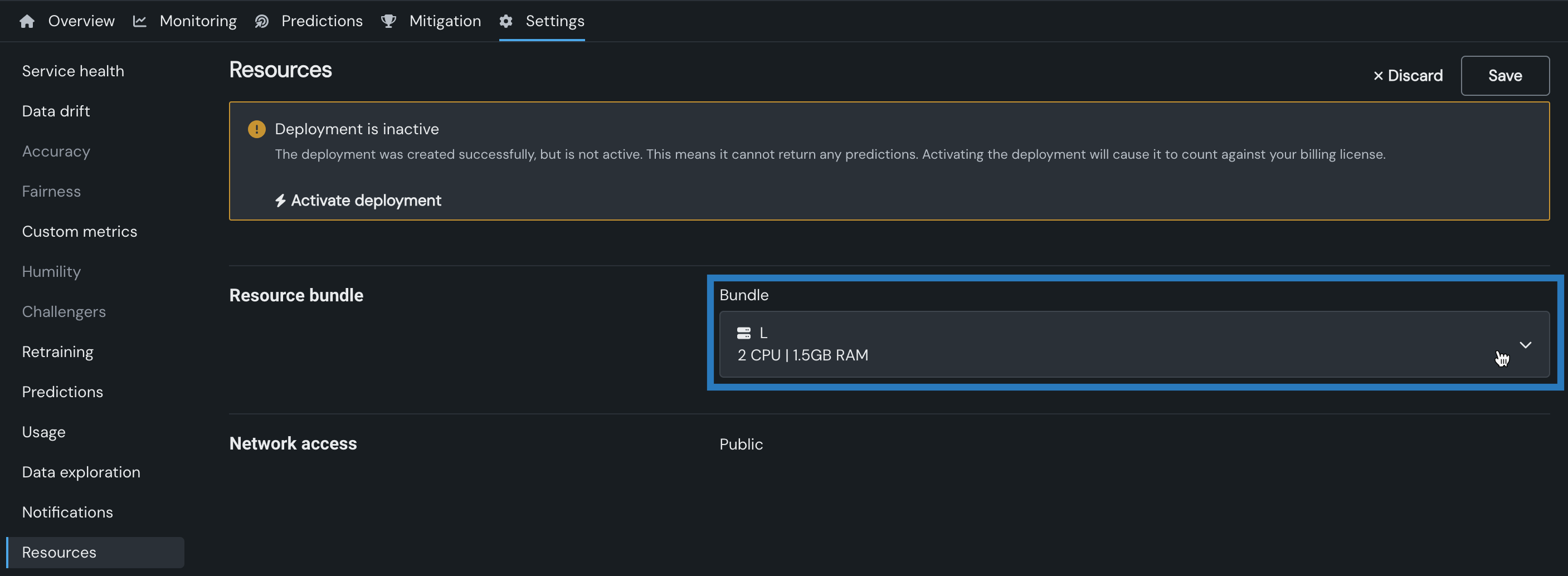 デプロイされたカスタムモデルでは、カスタムモデルのCPU(またはGPU)リソースバンドルとカスタムモデルの構築時に定義されたランタイムパラメーターが、構築後に編集可能になりました。