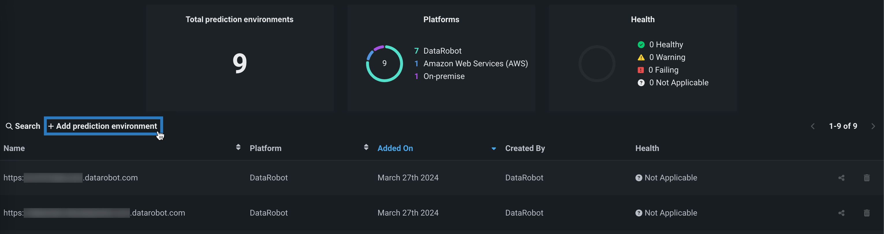_マネージドAIプラットフォーム(SaaS)_では、2024年11月より後に作成された組織は、予測環境ページで事前にプロビジョニングされたDataRobotサーバーレス予測環境にアクセスできます。