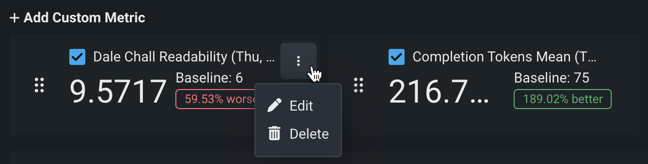 カスタム指標ダッシュボードでは、カスタム指標を追加した後、それらを編集または削除できます。