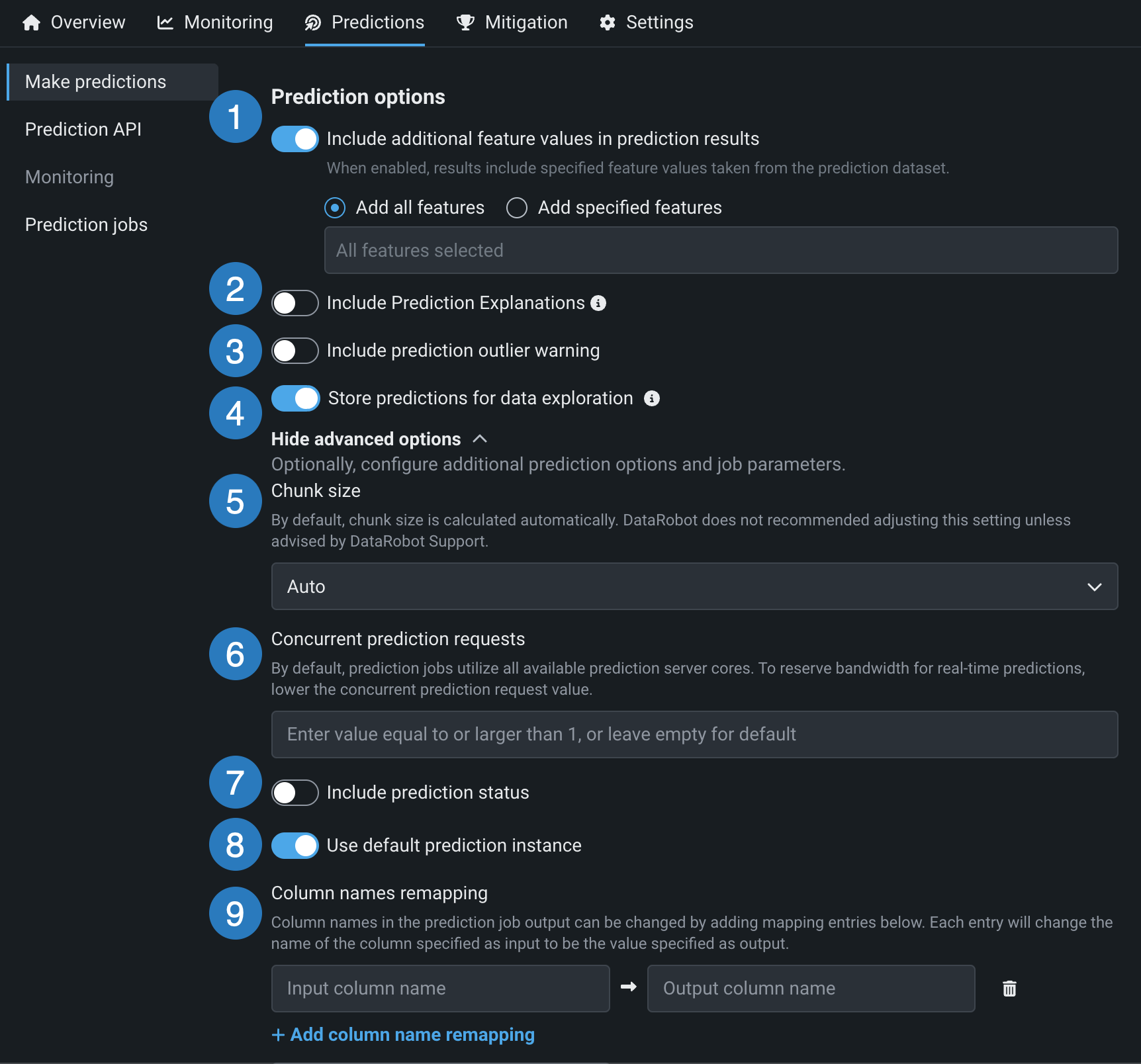 | 8 | デフォルトの予測インスタンスを使用 | 予測インスタンスを変更できます。 トグルをオフにして、予測インスタンスを選択します。 |