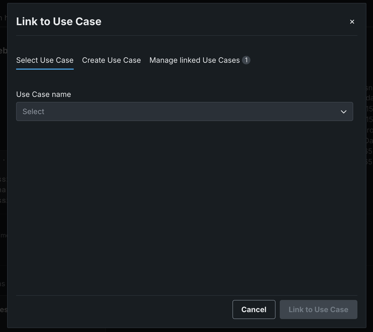 ユースケースへのリンクモーダルでは、3つのオプションがあります。