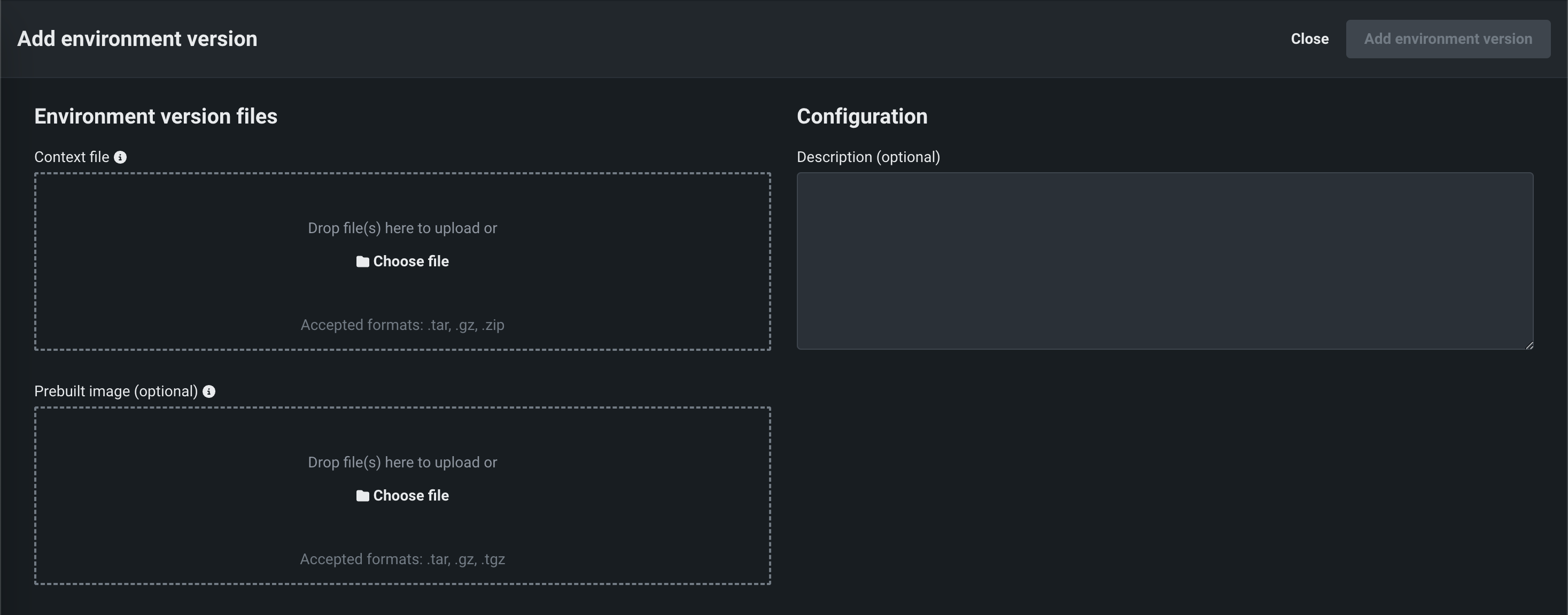 | 説明 | (オプション)カスタム環境バージョンの説明。 |