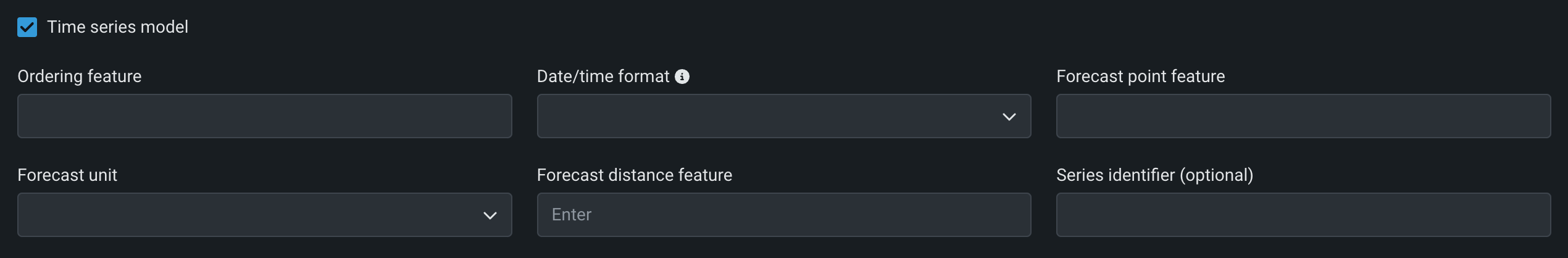 時系列モデルを登録する場合は、時系列モデルにチェックを入れてください。追加フィールドに入力する必要があります。