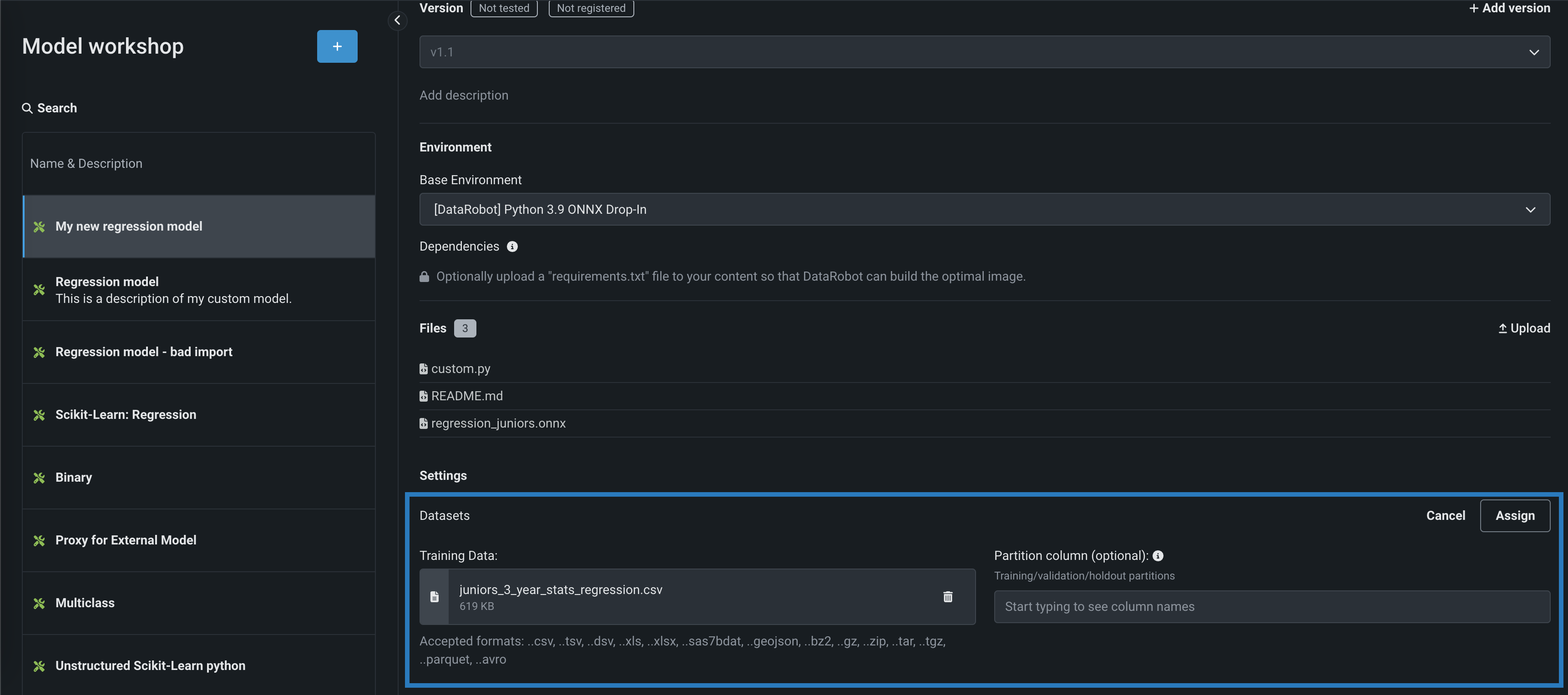 カスタムモデルデータセットの割り当て¶