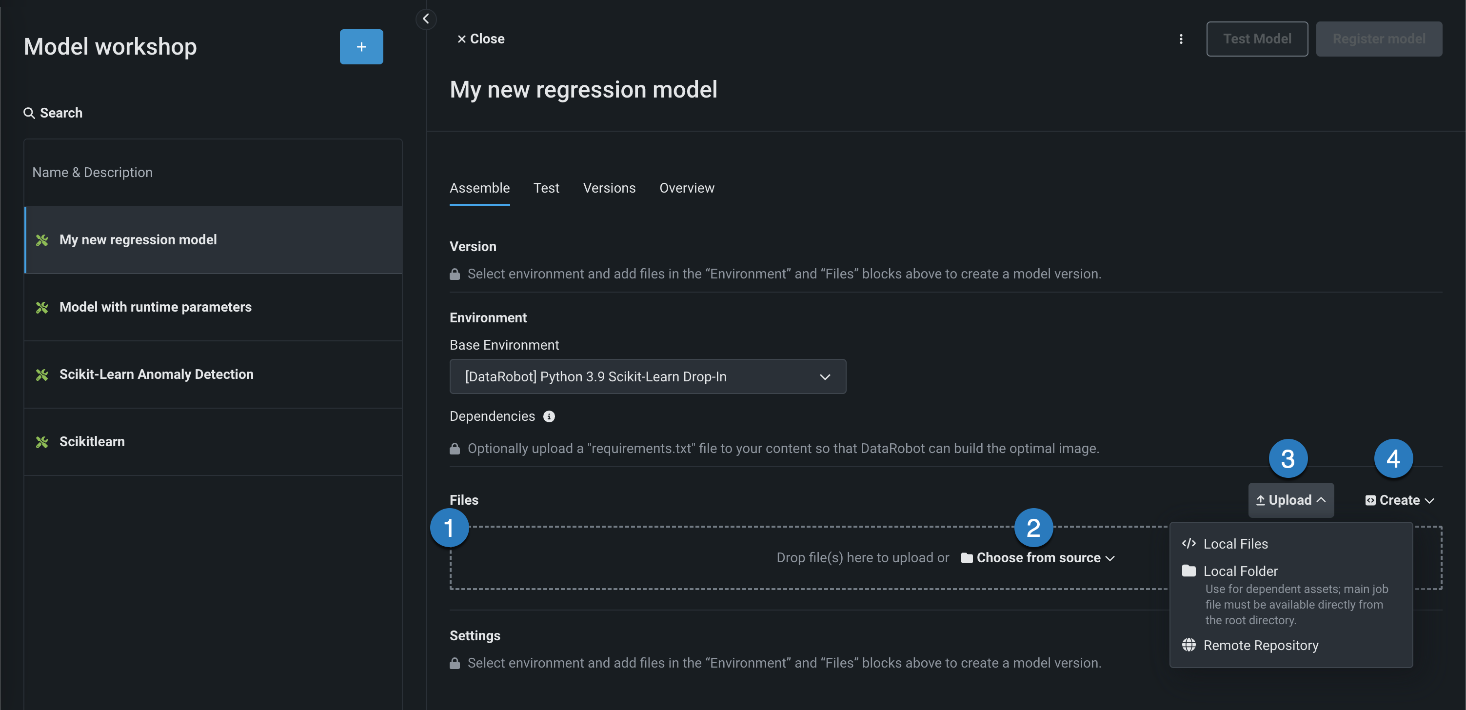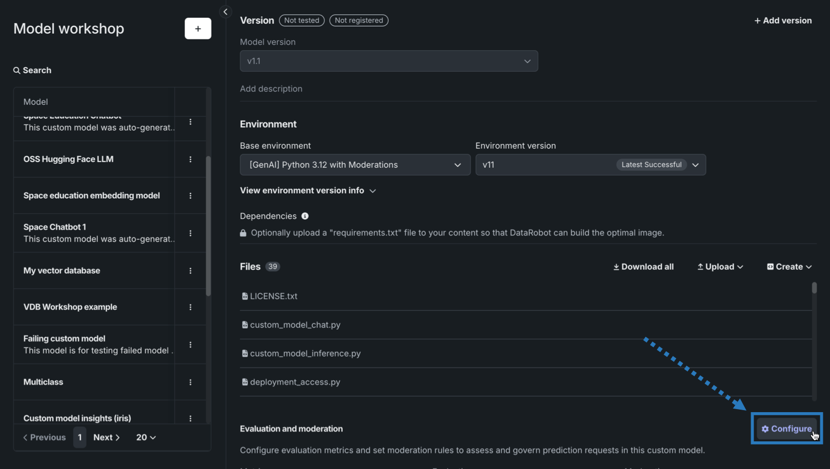 カスタムモデルを作成した後、必要な環境、依存関係、ファイルを指定できます。