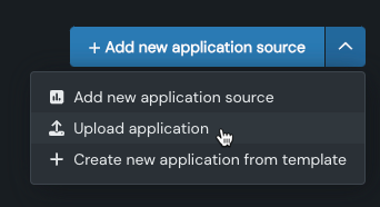 レジストリで、アプリケーションページに移動し、新しいアプリケーションソースを追加の横にあるドロップダウンをクリックします。 次に、アプリケーションをアップロードを選択します。