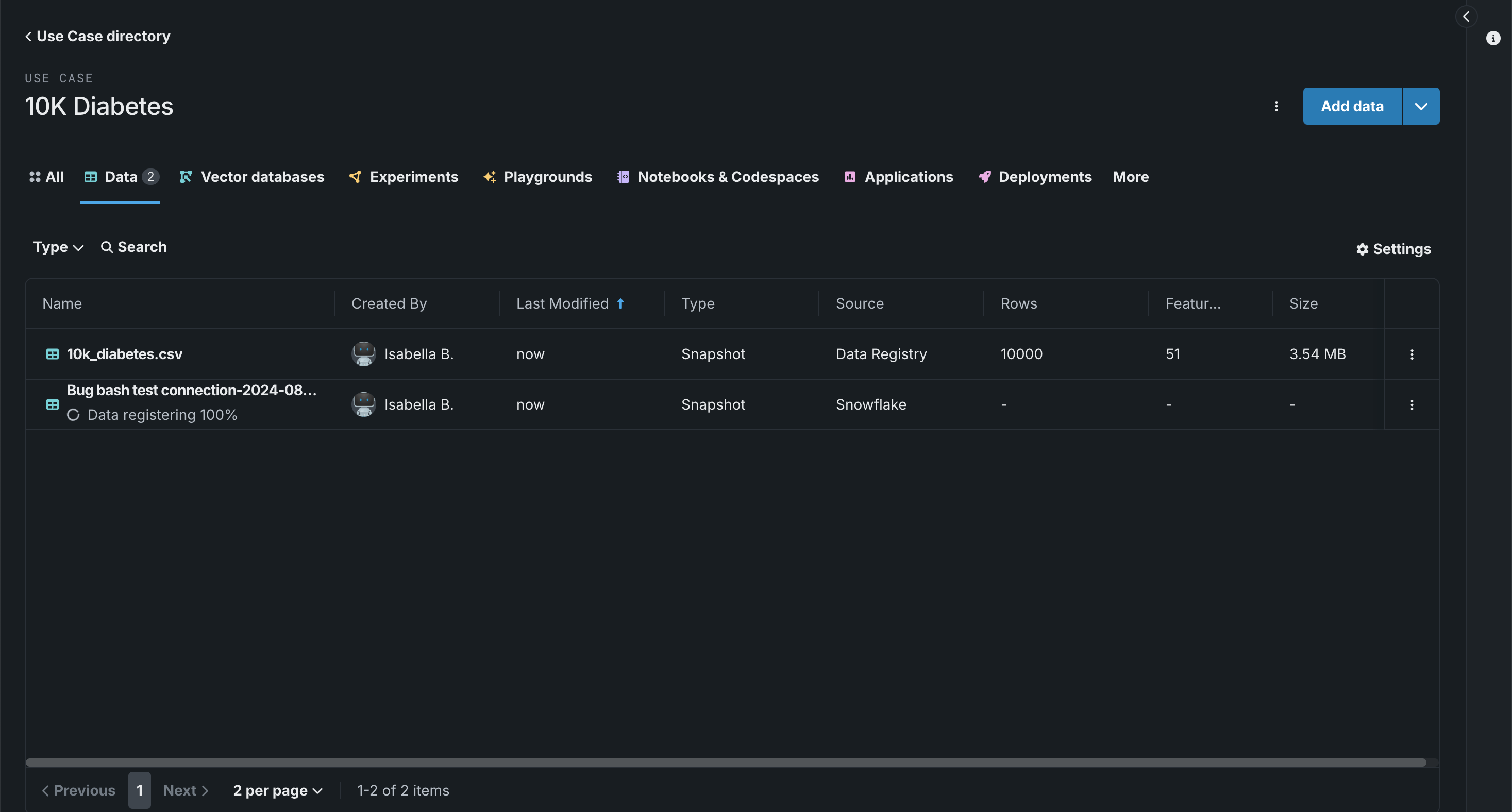 | データレジストリ | AIカタログで現在アクセスできる静的またはスナップショットデータセットを追加します。 |