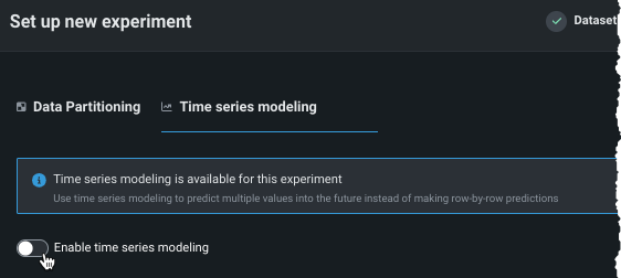 どのオプションを選択しても、時系列モデリングタブの設定が開きます。 そこから、時系列モデリングを有効にするをオンに切り替えます。
