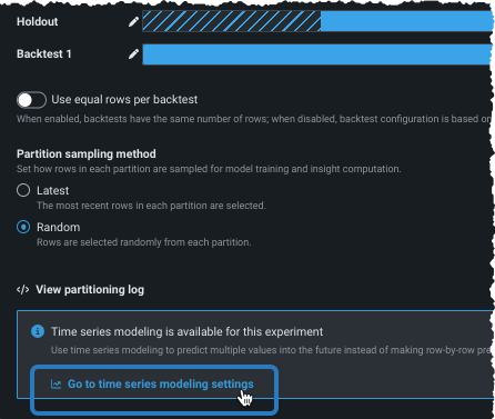時系列モデリングには、時系列エクスペリメントを設定するためのオプションセットが追加されています。