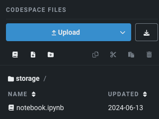 ノートブックの内容は、.ipynbファイルとしてcodespaceファイルシステムのルートにあります。