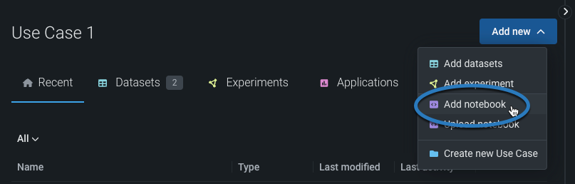 ノートブックをワークベンチからユースケースに追加するには、まずユースケースを選択してそこに移動します。