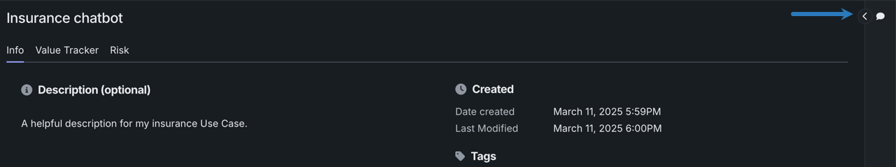 | 4 | タグ | 割り当てられたタグを表示し、管理オプションを使用してタグを削除したり、新しいタグを追加したりして、ディレクトリ内のユースケースの分類や検索に役立てることができます。 |