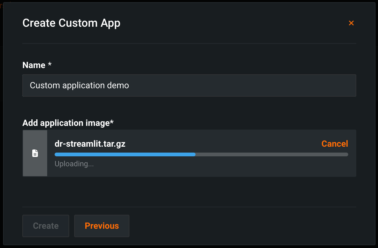 Custom application upload is a premium feature. Contact your DataRobot representative or administrator for information on enabling the feature.