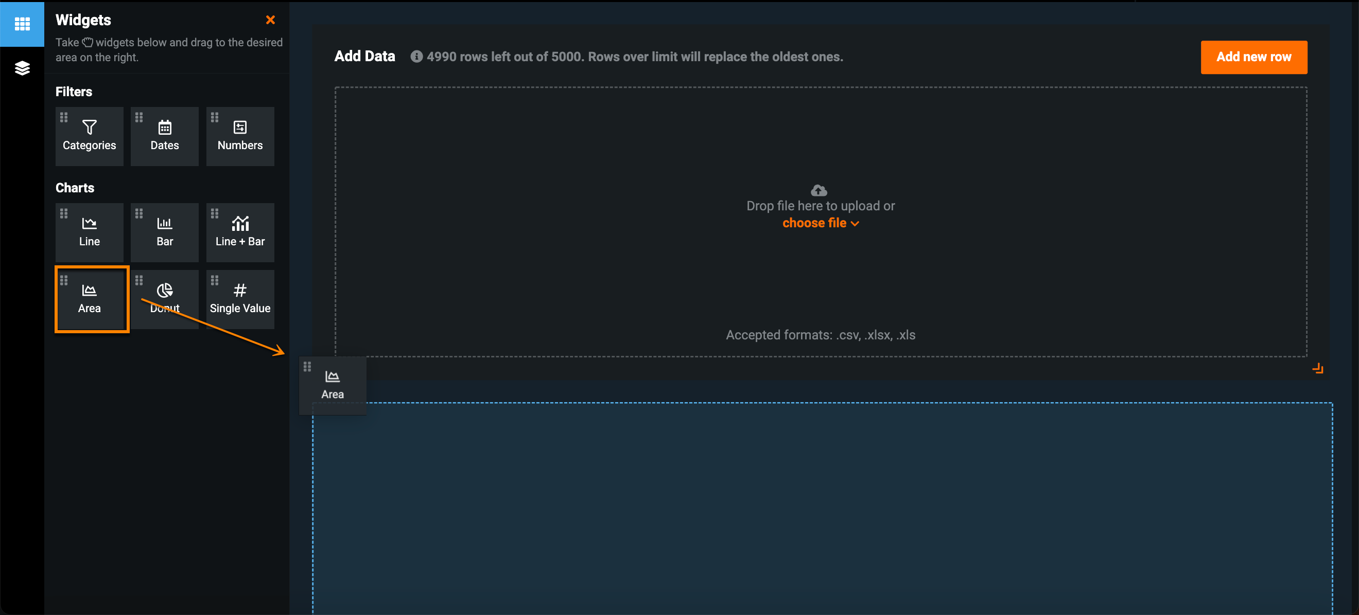 in the upper-left corner, then drag-and-drop a widget from the left pane onto the canvas.