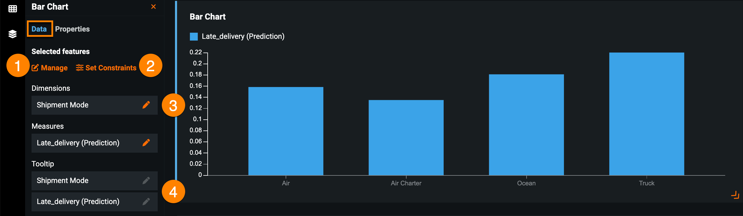 | 2 | Set Constraints | Adds feature constraints that instruct the app to only include values falling in the range determined by numeric constraints or specific values for a categorical feature. |