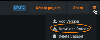 To download a dataset, select it from the catalog list. From the dropdown menu in the upper right, select Download Dataset (