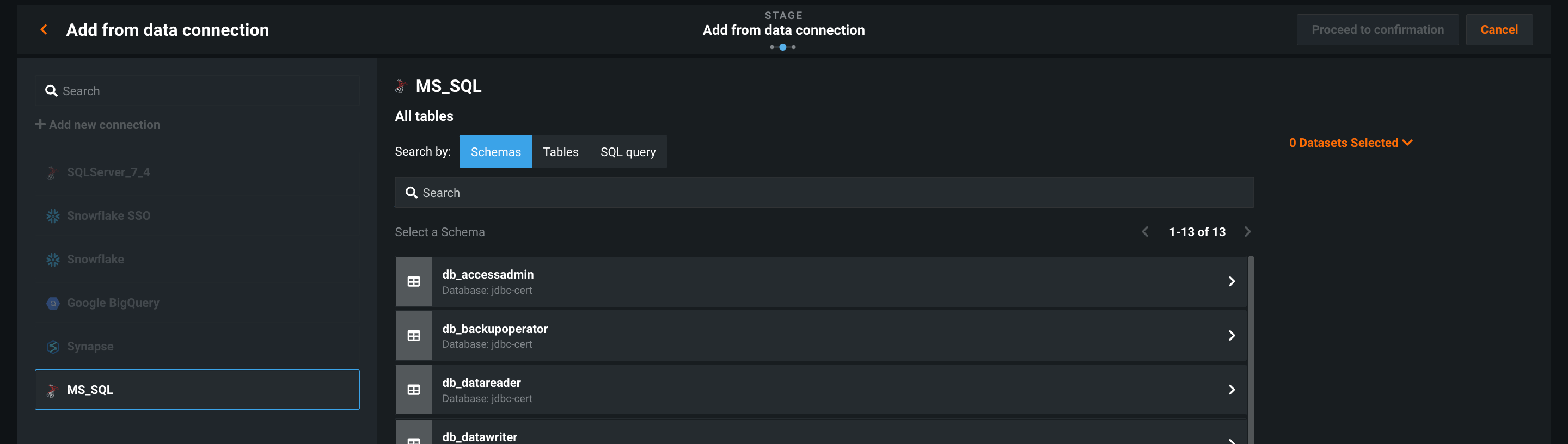 For Self-Managed AI Platform installations, you might not see any data stores listed. In that case, click Add a new driver and add a driver from the list of supported connections.