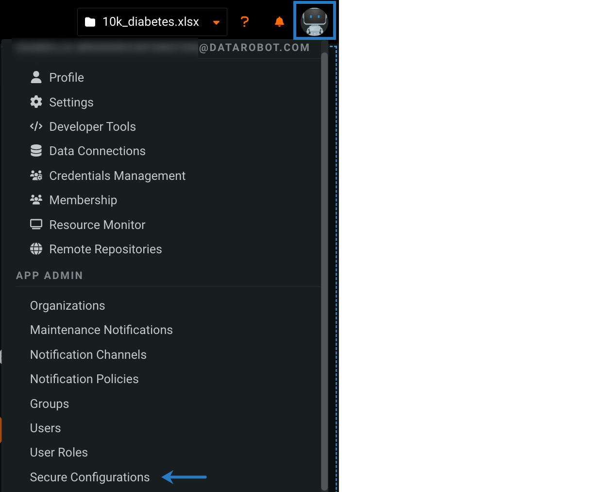 1. Click your user icon in the upper-right corner and select Secure Configurations.