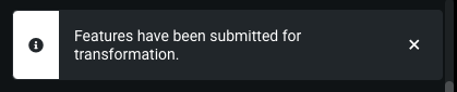 DataRobot creates the transformed features in the background. As each new (transformed) feature completes finishes processing, it is shown in the Data page (all features). Depending on the number of features selected for transformation, it may take several minutes for all new features to finish transformation and become available. A message indicates when all transformations are complete: