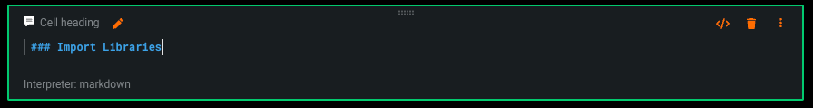 | Insert markdown cell below | Inserts a Markdown cell below the currently selected cell. |