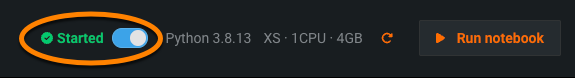 To create a terminal window in a DataRobot notebook, first ensure that the notebook environment is running.