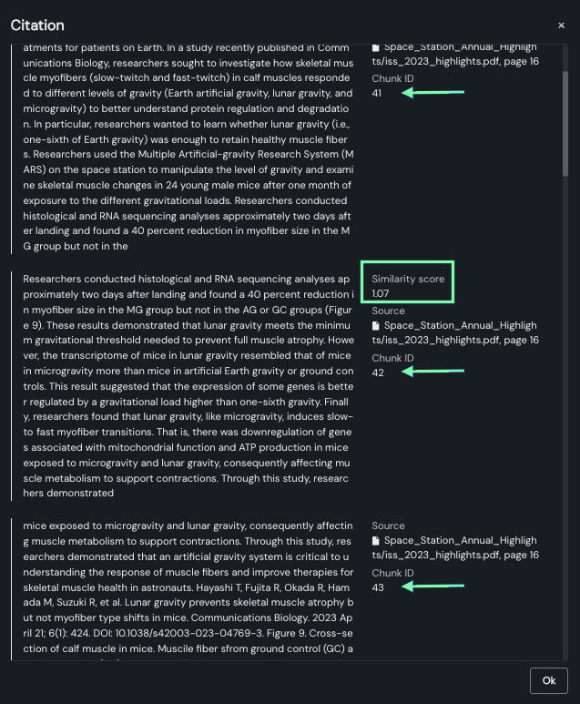 Notice also that only the primary chunk has a similarity score. This is because the neighbor chunks are added, not calculated, as part of the response.