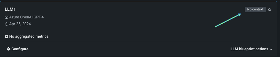 A badge, which displays to the right of the LLM blueprint name in both configuration and comparison views, reports the current context state: