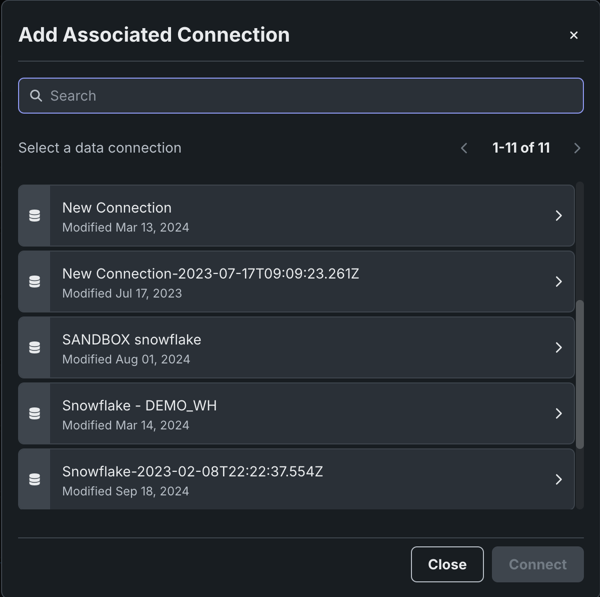 Click Add associated connection to add a data connection. Then, select the data connection you would like associated to these credentials and click Connect.