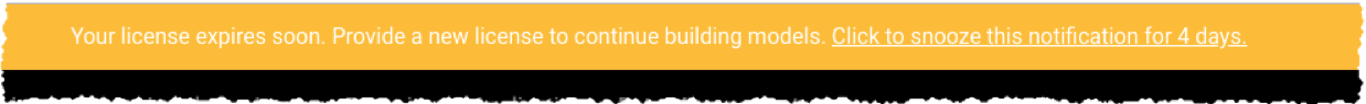 At times you may see messages in the banner across the top of the application window, indicating the DataRobot license is close to expiring or even that the license has expired. If you see these messages, ensure that your system administrator is aware of the license status.