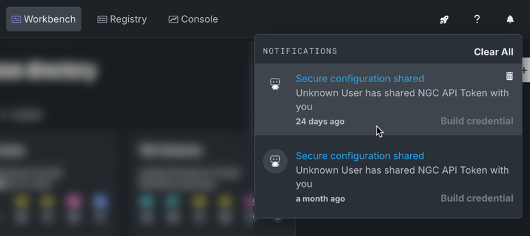 | Experiment shared / Project shared | Reports that an experiment or project has been shared with you. DataRobot also delivers an email notification with a link to the experiment or project. |