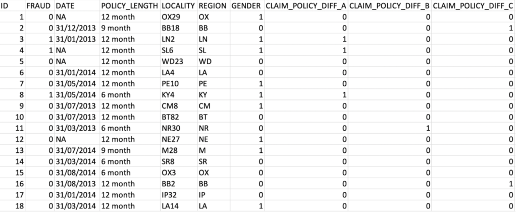 The target variable for this use case is whether or not a claim submitted is fraudulent. It is a binary classification problem. In this dataset 1,746 of 10,746 claims (16%) are fraudulent.