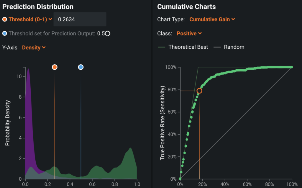 Set the ROC Curve threshold depending on how you want to use model predictions and business constraints. Some examples: