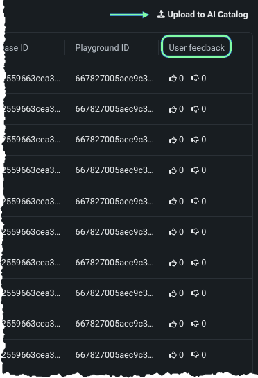 Scroll the page to the far right to see the user feedback. You can use this information for LLM fine-tuning.