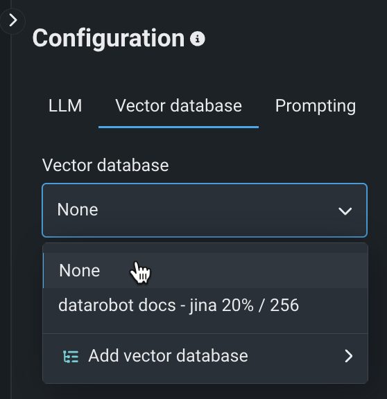 | Chunk overlap | This value will help to maintain continuity when the DataRobot documentation is grouped into smaller chunks of text to embed in the vector database. | 20% |