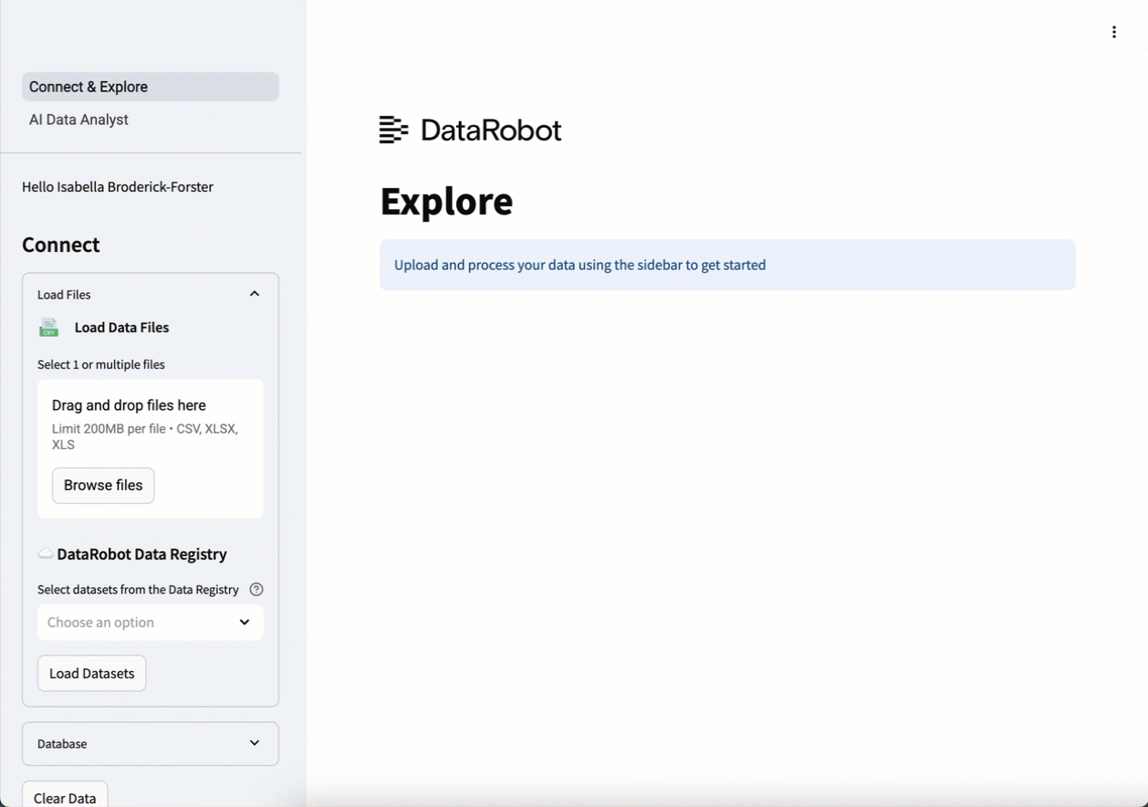 Talk to my Data Agent allows you to upload raw data from your preferred data source, and then, ask a question, and the agent recommends business analyses—generating charts, tables, and code to help you interpret the results. You can view a video walkthrough at the DataRobot Youtube channel.