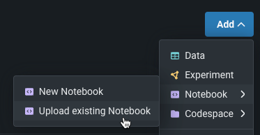 From the Notebooks tab of the Use Case folder, select Upload Notebook and navigate to the notebook file that provided with this walkthrough. Then click Import.