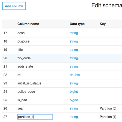loan_history.The year partition was left in Hive format while the month was not, to show what happens if this methodology is not applied. Glue assigns it a generic name.