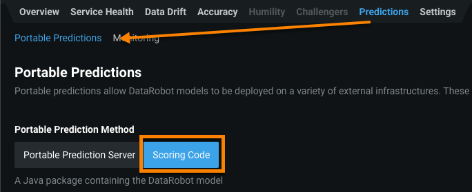 This option allows you to download validated Java Scoring Code for a predictive model without approximation; the code is easily deployable in any environment and is not dependent on the DataRobot application.