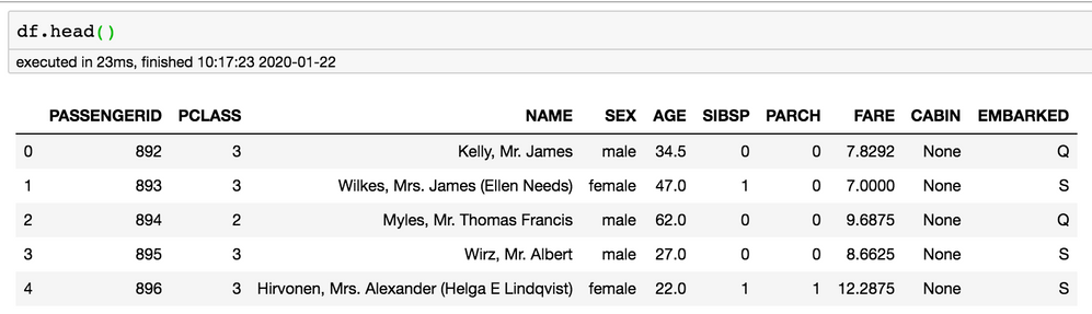 sql = "select passengerid, pclass, name, sex, age, sibsp, parch, fare, cabin, embarked " \
