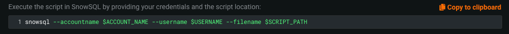 snowsql --accountname $ACCOUNT_NAME --username $USERNAME --filename $SCRIPT_PATH -