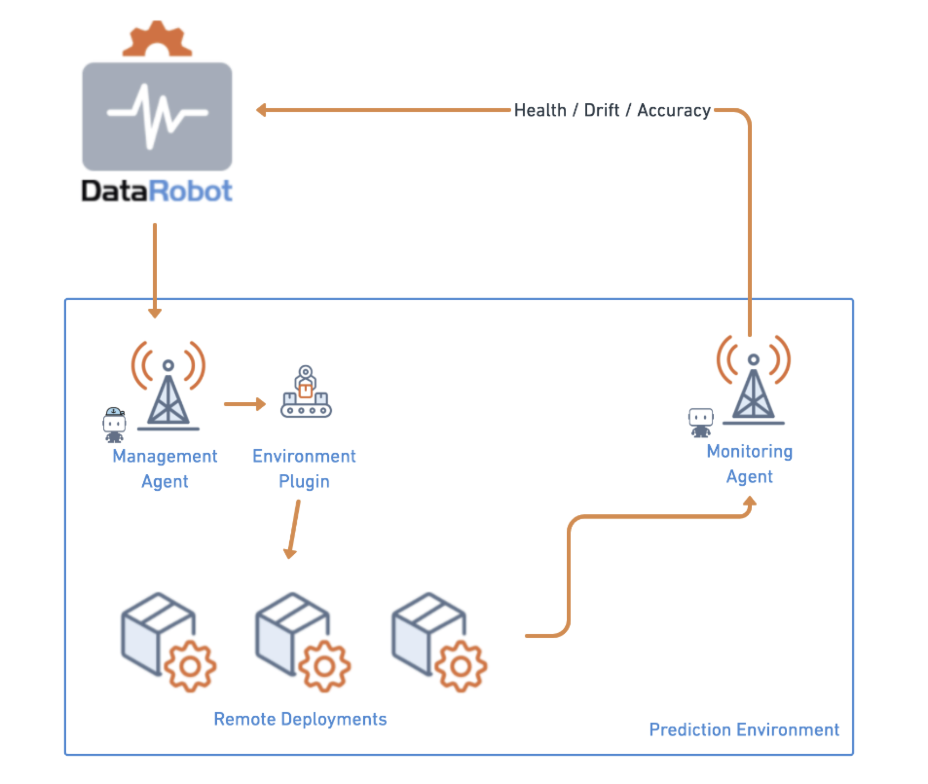 You can use the management agent to automate the deployment, replacement, and monitoring of models in an external prediction environment. Management agent setup begins with configuring a prediction environment to use with deployments. Before proceeding, register the prediction environment with DataRobot.