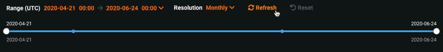 After predictions are made, click Refresh on the date slider to view an updated display of performance metrics for the challenger models.