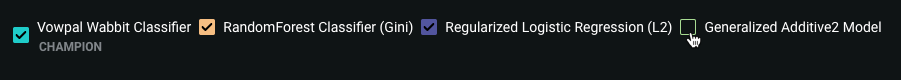 | 2 | Challenger models | The list of challenger models. Each model is associated with a color. These colors allow you to compare the models using visualization tools. |