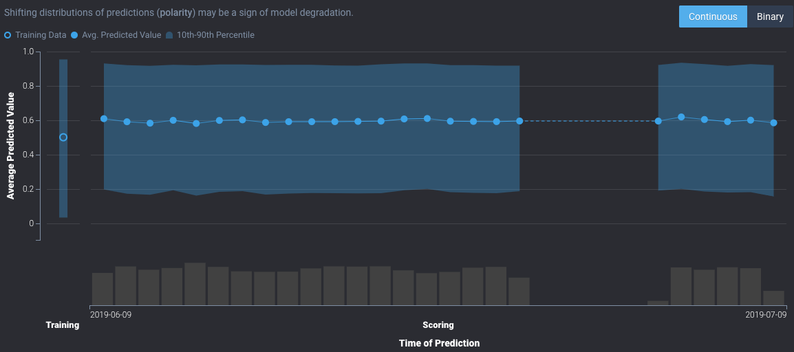 The chart also includes a toggle in the upper-right corner that allows you to switch between continuous and binary modes (only for binary classification deployments):