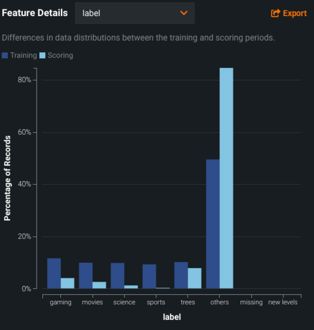 - Calculating the fraction of rows that contain these terms for that feature in the training data and separately in the scoring data.