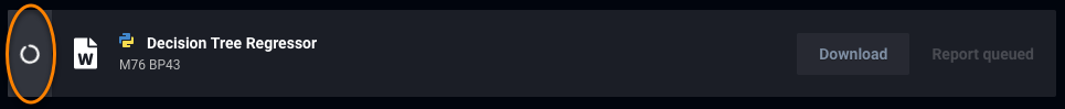 3. After selecting a template, click Generate Report to initiate DataRobot's report production process, which results in creation of a DOCX file. You will see an indicator that DataRobot is creating the report.