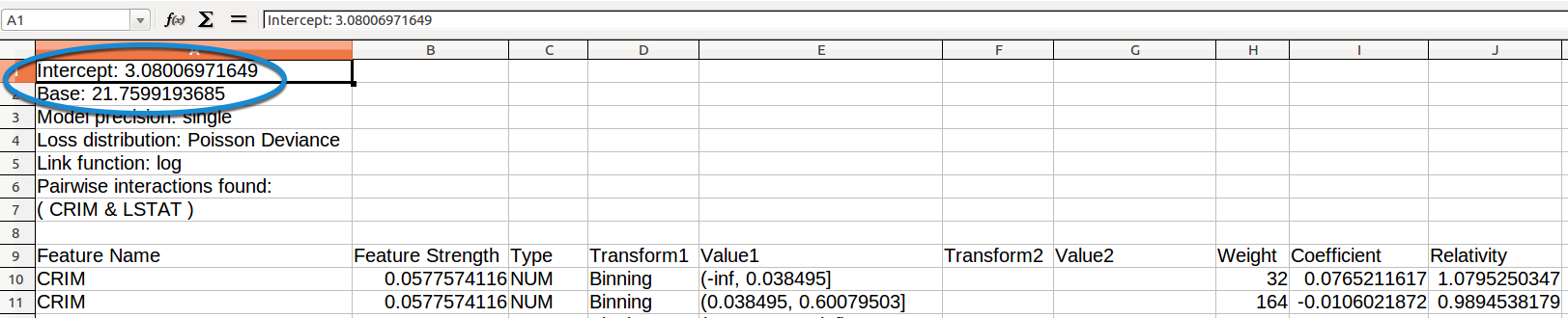 Relativityis the exponential ofCoefficientfor each row and is computed from theCoefficientvalue in the row. -