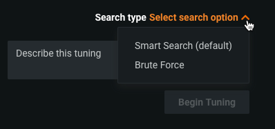 | Begin tuning (5) | Launches a new tuning session, using the parameters displayed in the New Search parameter list. |