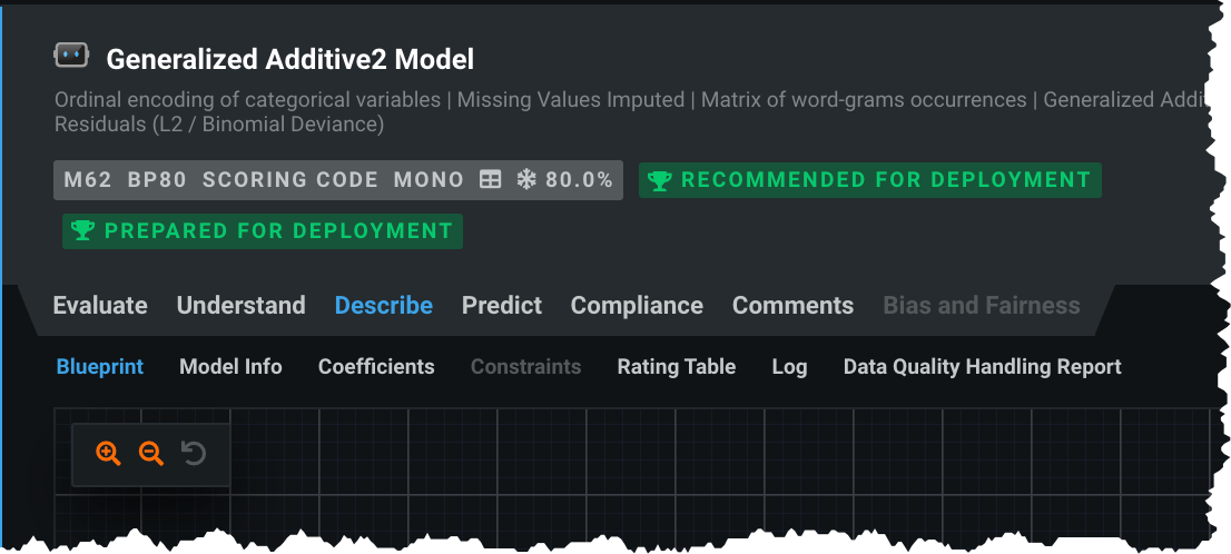 | Blueprint | Provides a graphical representation of the data preprocessing and parameter settings via blueprint. |